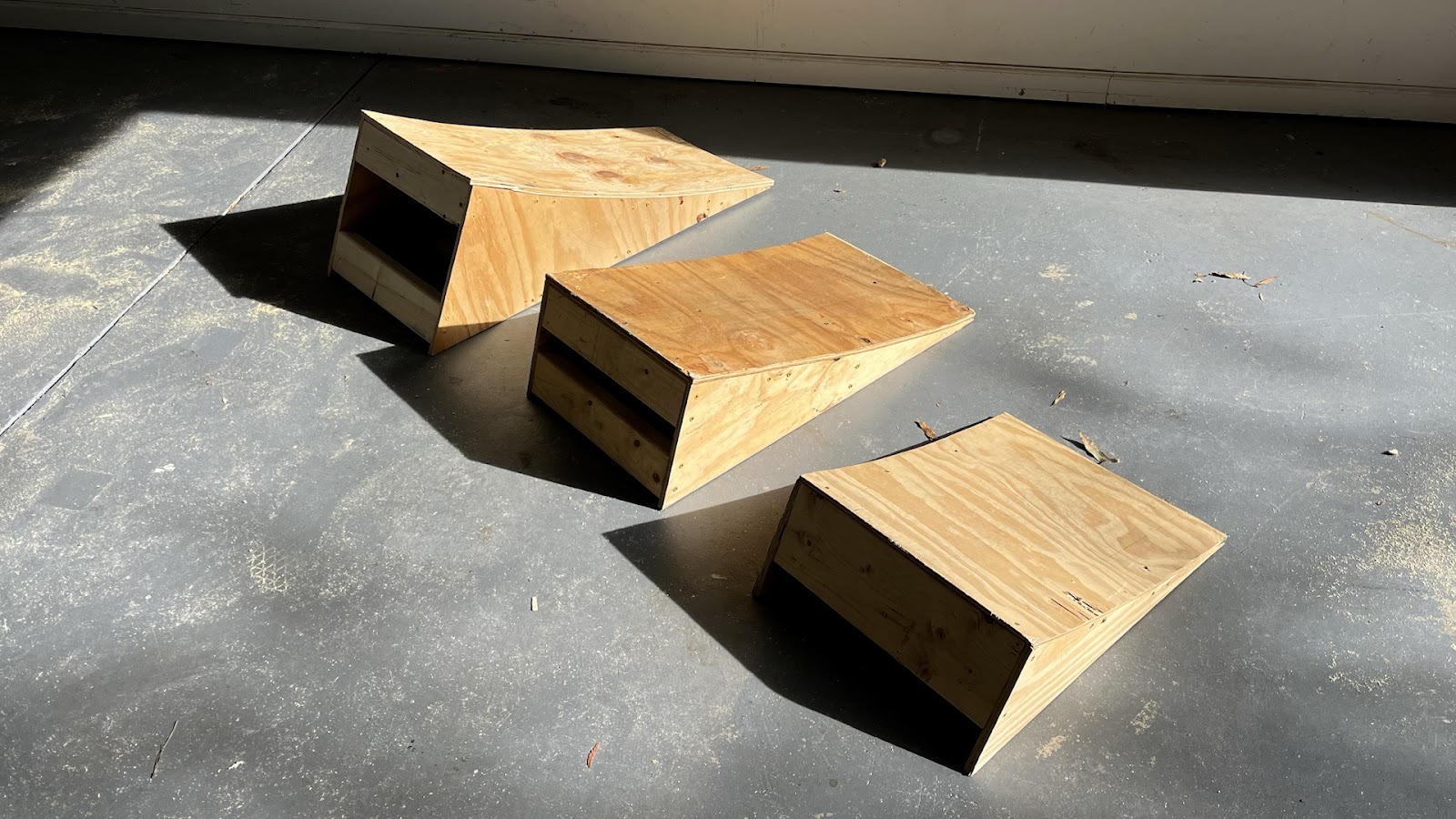 A few notes: There are a lot of options when it comes to plywood. Because the finished ramps are small enough to store in a garage, you don’t need any fancy weather treatments. We got the cheapest thing we could find that is around ~1/2". (Actual thickness is 15/32 – plywood is weird like that). Keep in mind that if you get something too thick, it will be hard to bend the top surface to fit the curve of the ramp.